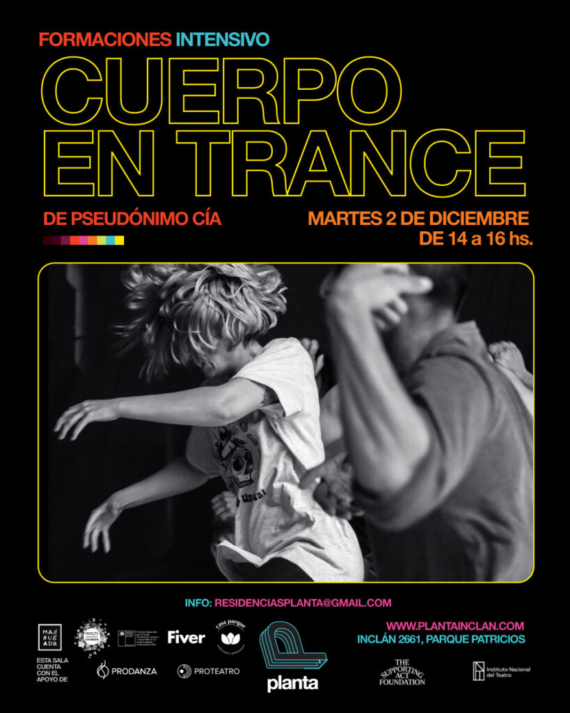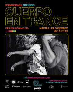 CUERPO EN TRANCE es un entrenamiento corporal impartido por Pseudónimo Cía que desarrolla la resistencia física a través del goce y la conciencia del movimiento en un trabajo colaborativo.
