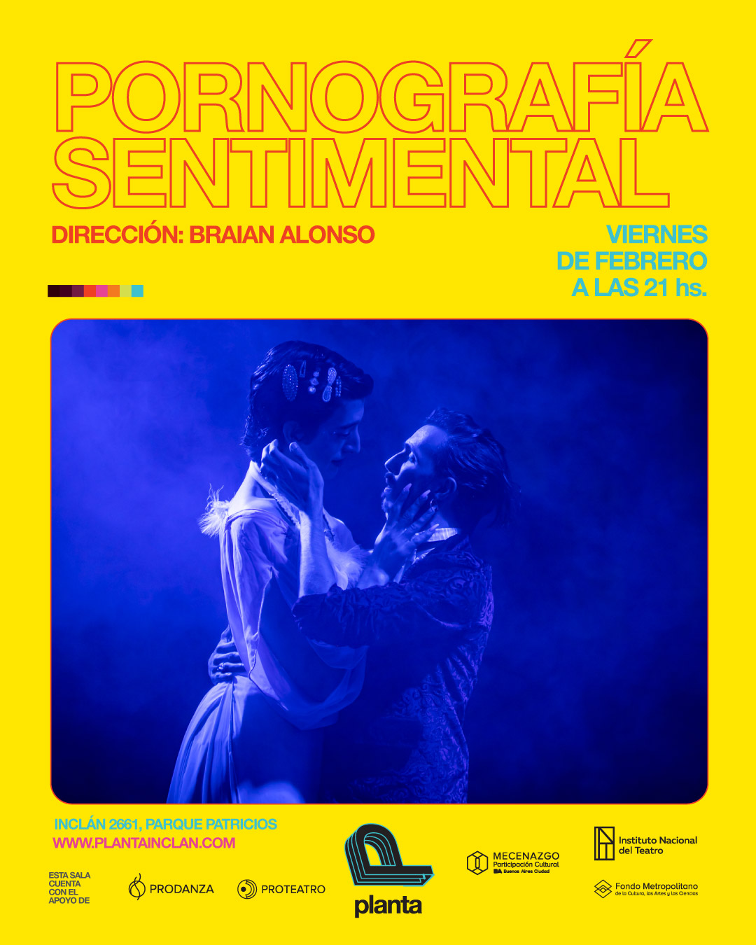 Pornografía Sentimental es una obra kitsch y cursi en la que trituramos y despedazamos nuestros recorridos sentimentales, eligiendo algunos momentos y haciendo un collage de streaming, fotos y teatralidad. Es un montaje de parodias, enredos y accidentes sobre estructuras caducas que intentan normar nuestros afectos.